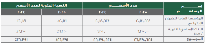 بلـغ عـدد المسـاهمين فـي الشـركة ( 40,159) مسـاهمًا كمـا بتاريـخ 31/12/2025، كما أن رأس مـال الشـركة المصـرح بـه والمدفـوع (100) مليـون دينـار (100) مليـون سـهم بقيمـة دينـار أردنـي للسـهم الواحد.